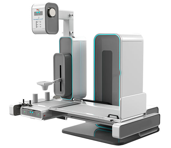 Современный аппарат «РЕНЕКС» удобен в эксплуатации, имеет мульти поворотную моторизированные систему независимого позиционирования деки стола, излучателя и приемника, предполагает управление движениями аппарата из пультовой при проведении исследований в различных плоскостях и проекциях без изменения положения пациента. Функционально заменяет классический комплекс на 3 рабочих места занимая при этом значительно меньшую плошать процедурной.