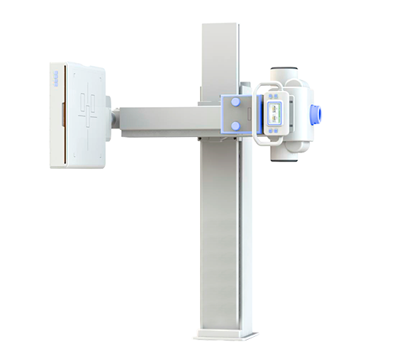 Цифровой флюорограф открытого типа представляет собой стойку-штатив с моторизованным вертикальным перемещением траверсы и плоскопанельным цифровым детектором 43х43 см.